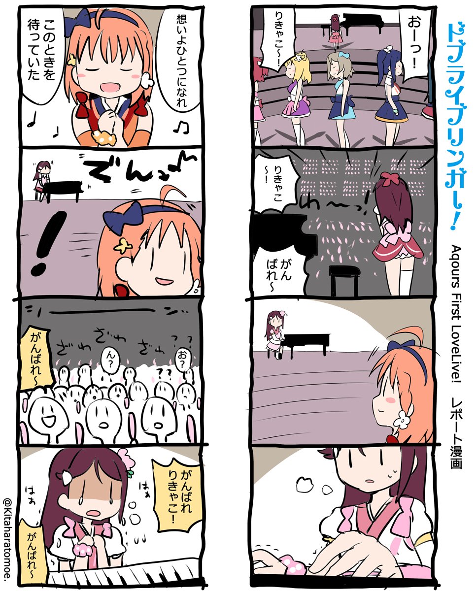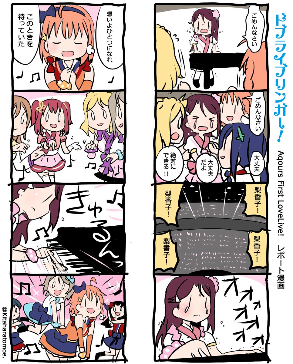 「でも、メンバーが瞬時に駆け寄ってきてくれて、そして会場の人の声で、あ、泣いてる場合じゃないと逢田梨香子の中の”桜内梨子”をなんとかもう一度奮い立たせることが出来た。あれがなかったら絶対に心が折れていたし、一生後悔してたと思う。もう一度チャンスを与えて下さって本当にありがとうございました。そして”想いよひとつになれ”の歌詞一つ一つが胸に響いて私を支えてくれました。」